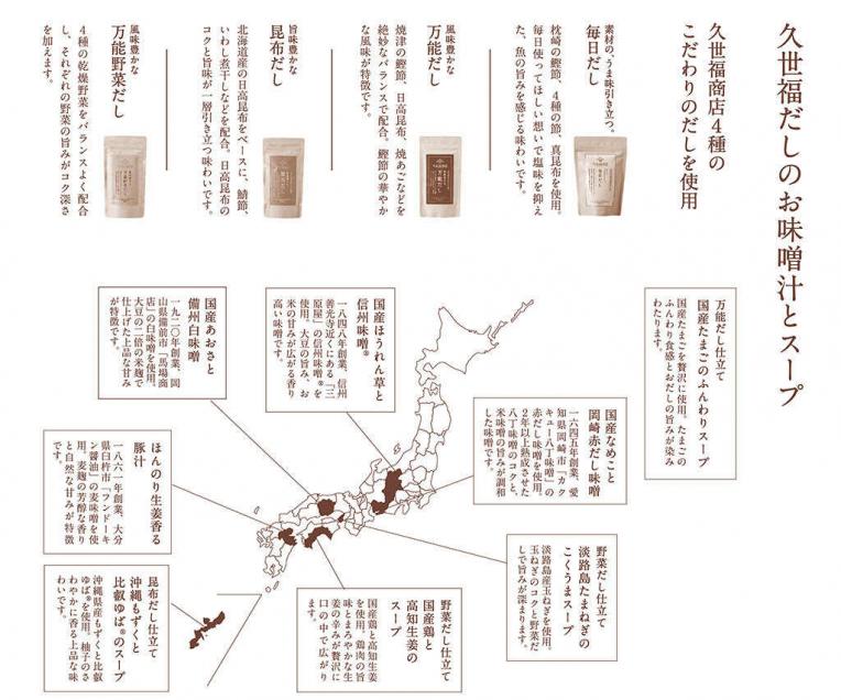 ふたの裏には、久世福こだわりの「だし」の特徴や、全国の味噌の歴史を紹介する読み物が印刷されており、