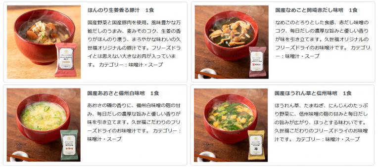 久世福商店オリジナル、素材にこだわった贅沢なフリーズドライのお味噌汁です。
