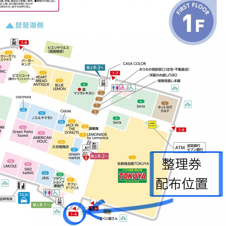 ※整理券配布場所の1F 「1-4」入口前におきましては、雨をしのぐ
