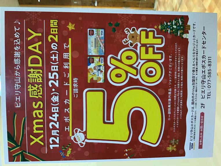 明日までの2日間エポスカードご利用のお客様は5%OFFになっております