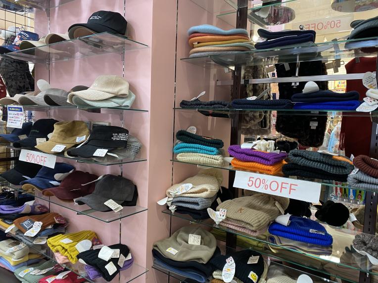 帽子やマフラー、手袋など、あったかグッズが定価より最大半額となっております!