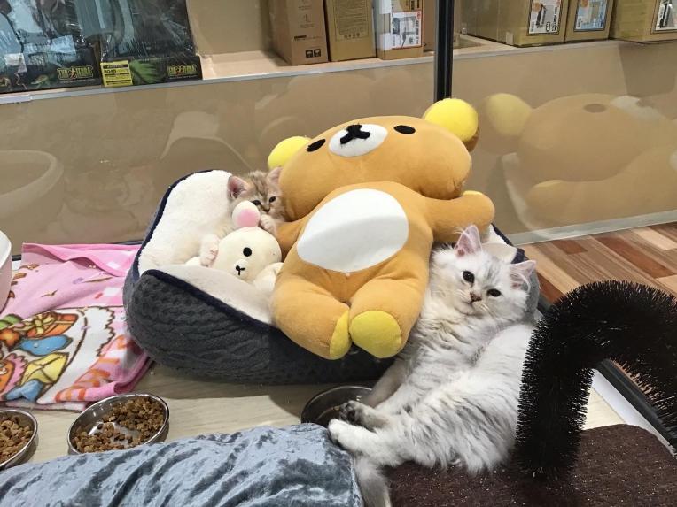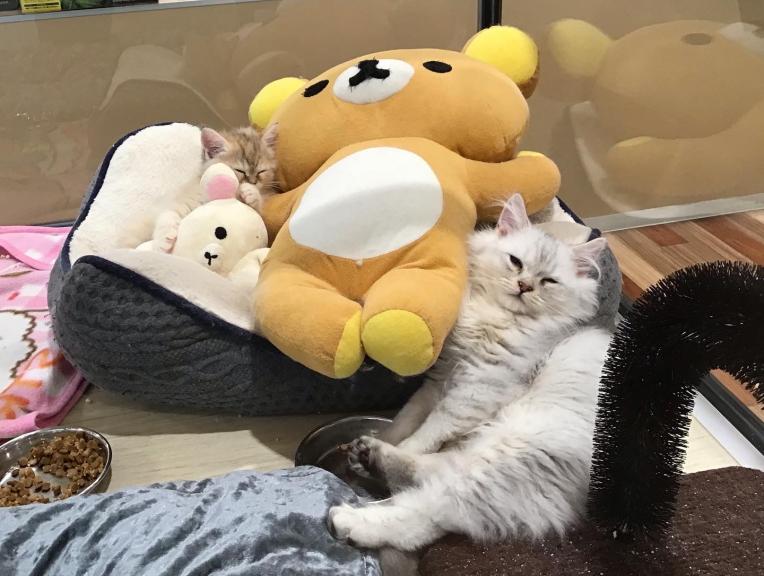 リラックマのぬいぐるみが大好きな猫ちゃんズ♪