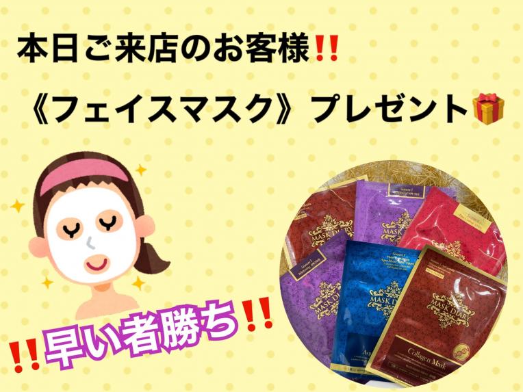 ご来店でもれなく「フェイスマスク」プレゼント!!!